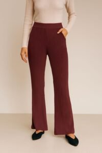 Featuring a flattering high-waisted elastic band and a breezy, wide-leg silhouette, these ribbed wide leg lounge pants are designed to take you from a morning yoga flow to a stylish coffee date with ease. The calming sage green hue and vertical ribbing create a sophisticated look that elongates the frame while ensuring maximum breathability.  the fabric offers a “second-skin” softness while maintaining enough structure to drape beautifully from the hip to the hem. The wide-leg silhouette is the star of the show, Unlike restrictive skinny jeans or tapered joggers, the generous cut allows for maximum airflow and freedom of movement. It captures that effortless “model-off-duty” look that transitions seamlessly from the couch to the coffee shop.
