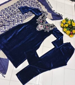 a modern yet ethnic design, carefully crafted to suit various occasions. Whether it’s a casual day out, a family gathering, or a festive celebration, this set stands out with its elegant silhouette and stylish appeal. The pants are tailored to provide a comfortable fit while complementing the kurta’s flowy and flattering design.